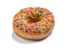 Наш легендарный пончик оригинальный в шоколадной глазури, посыпанный радужной кондитерской посыпкой.